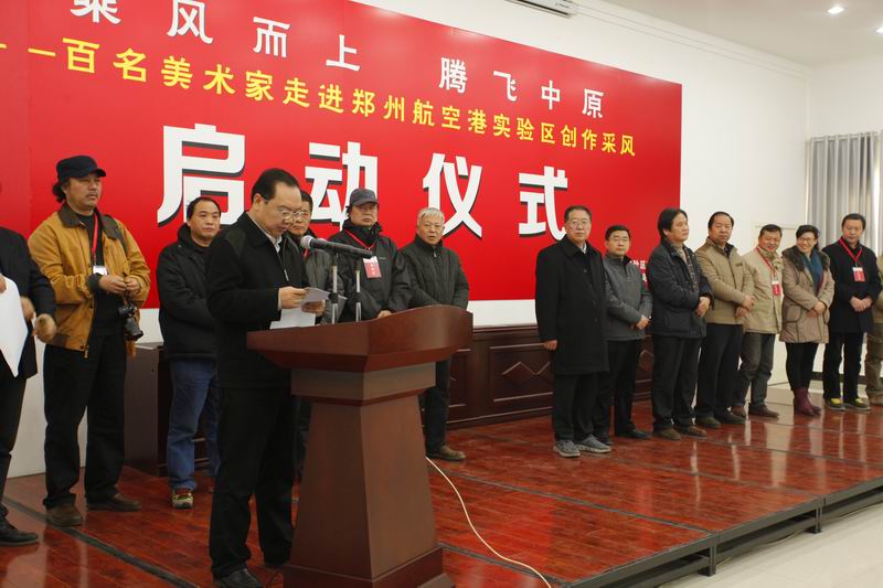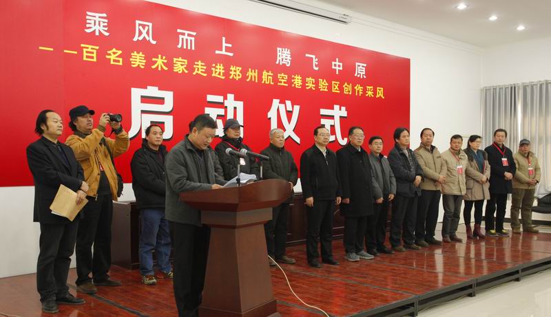 郑州市美协主席白金尧向参与本次活动的领导和美术家表示感谢,向给予本次活动大力支持的相关部门表示感谢。他说:“郑州市美协组织100名实力派美术家走进郑州航空港实验区进行采风活动是为了助推港区的繁荣发展,让艺术更好的为港区经济建设服务,为港区人民群众服务。百名美术家深入生活、体验生活,接近群众,向人民学习,深入贯彻习总书记在文艺工作座谈会上的重要讲话精神。”