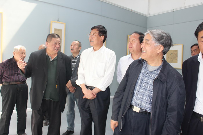 参加本次展览开幕式聊城市领导和艺术界的朋友有:市政协主席、市委宣传部部长赵庆忠同志;市政协秘书长路仕俊同志;市委宣传部副部长赵昌军同志;市委宣传部副调研员薛兆立同志;市书协主席刘延福同志;市书协副主席张鸿达先生、程宏志同志;聊城大学艺术学院书记、聊城大学书画艺术研究院院长、聊城市美术家协会副主席张宪平教授;市书协副主席、聊城大学书画艺术研究院副院长方建光先生;聊城大学艺术学院教授、聊城大学书画艺术研究院副院长王好军先生;一起来的还有聊城大学艺术学院前来现场交流学习的同学们。