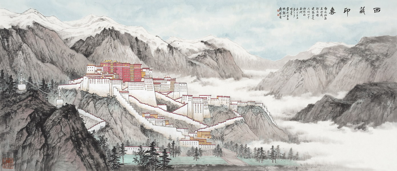 我也画过不少内地的名山大川,可沿着318国道进入西藏,心灵依然被震撼到了。雪域高原,神山圣湖,高山峡谷纵横,古木参差云集。怒江七十二拐,通麦天险,然乌湖畔山水重叠,那曲的苍茫大地。塞外江南林芝,桃花流水映雪山。雄伟的布达拉宫承载着千余年的信仰,神秘的珠穆朗玛峰矗立于离天最近的地方。置身于这片神秘的大地上,忘却了城市的喧嚣,无论是站在雪山上看五色经幡随风吟唱,还是漫步于湖边观水中天地,心灵早已被洗涤的无比宁静。西藏离我很遥远,太多的美景无法用画笔去描述。她又离我很近,永远留在我的脑海中,也浮现在我的笔痕之下。这次整理出十余幅作品,一改往日面貌,各位师友斧正。