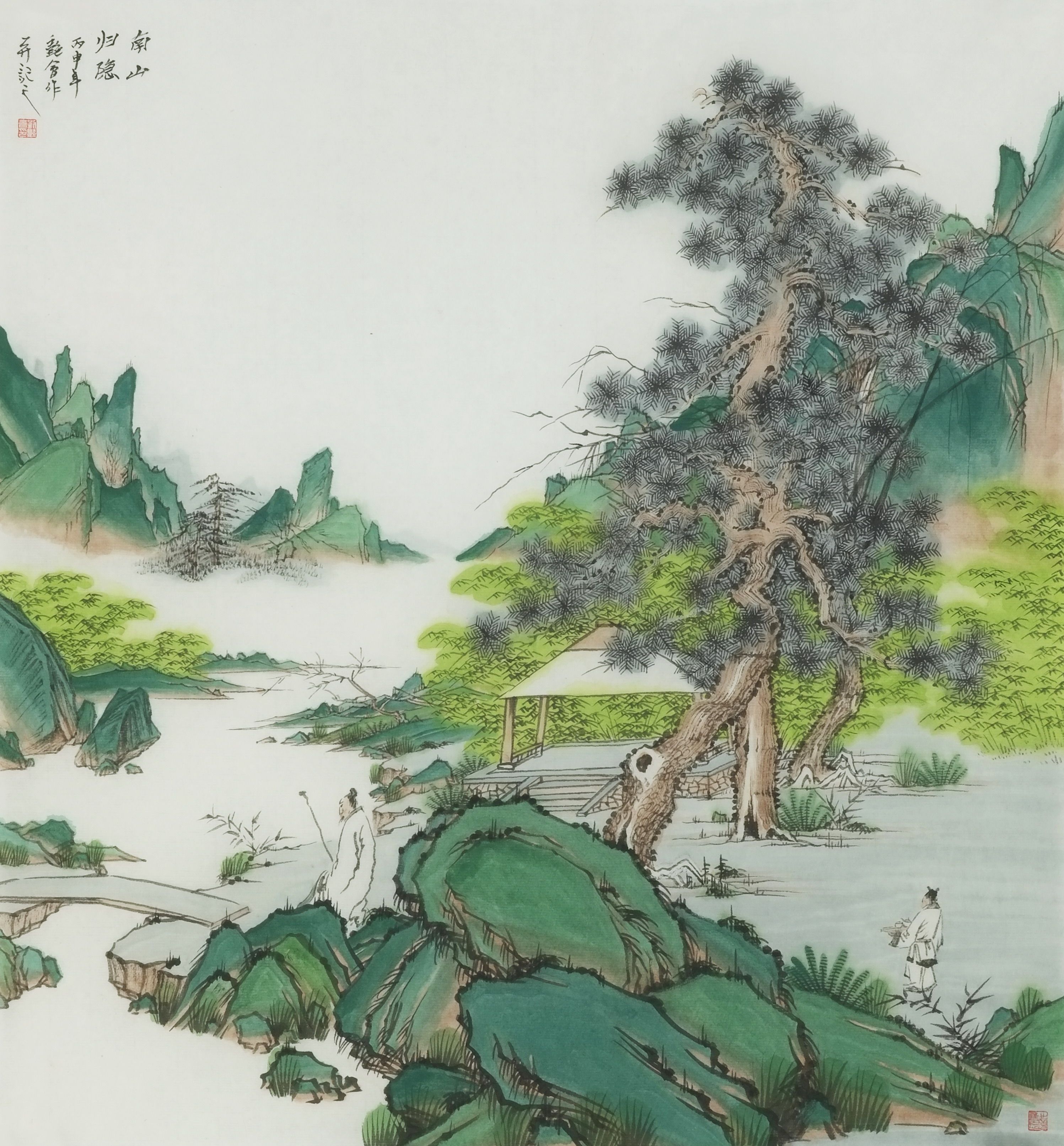 这种生命的流动不是无缘由的,而是一种在解开心灵的负累后,撷取的心灵愉悦。这是刘艳会的精妙之处:用向上的心态破解心灵的静穆、安详与生活的繁碌、纷纭这一对矛盾。这恰是画家开掘艺术的绝好意境。人性本身对幽远、静穆、诗意的情境有着天然的追逐感,而对忙碌、繁杂、焦虑的生活却有着根本的抵触。于是“诗意化的栖居”遂成为都市人的心灵旨归。籍于此,刘艳会开始探求“人与自然”与“天人合一”的意境融合,这也正是他在青绿山水中想要表达的东西。他力求打破固有的技法而执意探索山水的真诚与空灵。他深刻地知晓,意境的空灵和心绪的真诚决定艺术的成功。如果艺术家缺失真诚的心性。那么画面效果就唤不起审美的共鸣。在喧嚣躁动的都市化生活中,人们回归自然的心性被空前地唤回,与其说这是一种精神渴求,不如说这是心性的使然。而甘于平静的艺术家,面对静穆和喧嚣,自然而然地选择静穆,洁身自好,借秀润青山滋养浩然之气,以其在生命的状态里表达自己的心境。从这一意义上讲,当代的山水艺术并未将传统的文人的生存意趣全部抛弃,而是在心性和精神的慰藉和旨归上寻找着共通之处。处在物质的极度丰富和经济的快速膨胀之中,社会愈来愈被物欲化。身心憔悴的都市人生发出超越心灵享受静穆的生存理念,极力寻找天人合一的安详境界。这样,当代山水画便有了一条创新之路——满足都市人寻求一尘不染,用清新意境陶冶心灵的青绿山水图式。当代山水画由此找到了审美愉悦的契入点。这就是刘艳会在塑造清丽清新的林泉高致的意境时,创作出符合时代特质且有着强烈时代感的新青绿山水艺术,既丰富了中国画的艺术语言和表现力又逐渐形成了独有的艺术风格。