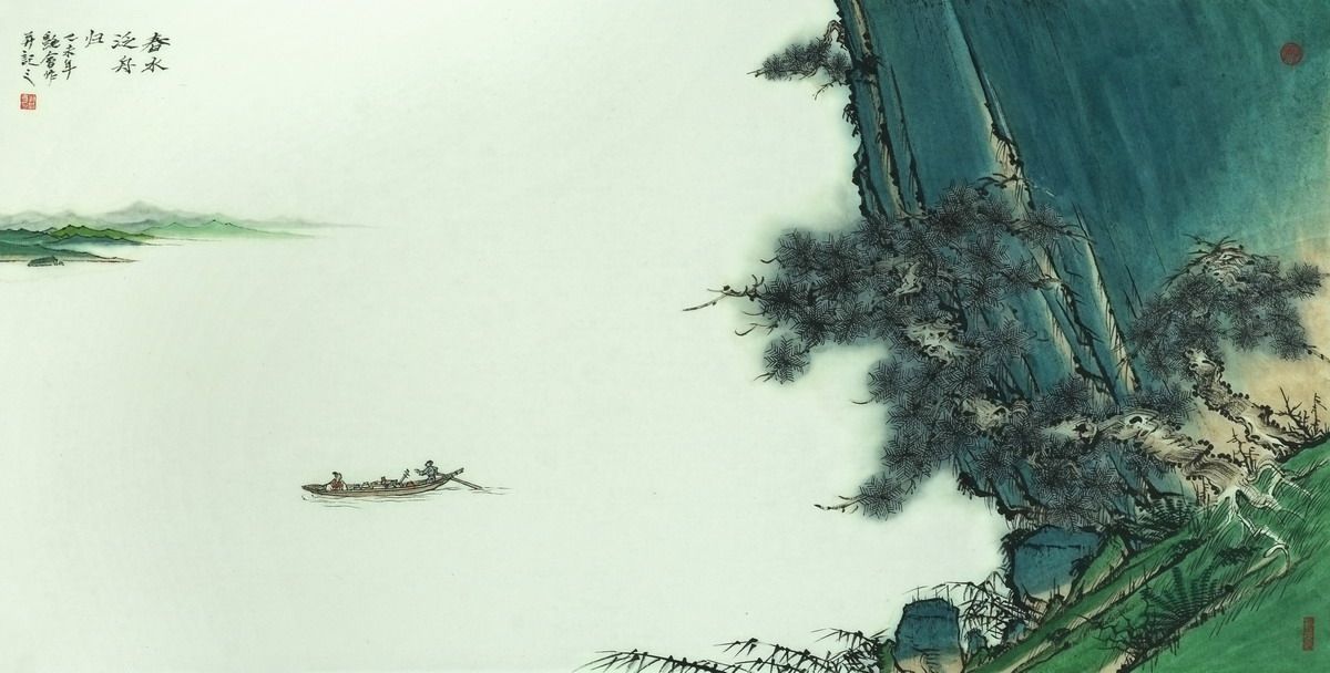 刘艳会在用心把握时代精神的前提下,注重笔墨的意境渲染。他告别了传统青绿山水的固有程式,而着力构建画面清新、静远的意象。他深知,这种意象是山水画最核心的体现,也是画家所追求的至高境界。人们从其作品呈现出的诗意境界和空灵意蕴可以领略其笔墨的追求和精神的坚守——与其说这是哲学层面的表达,不如说这是画家不经意间的情致流露。