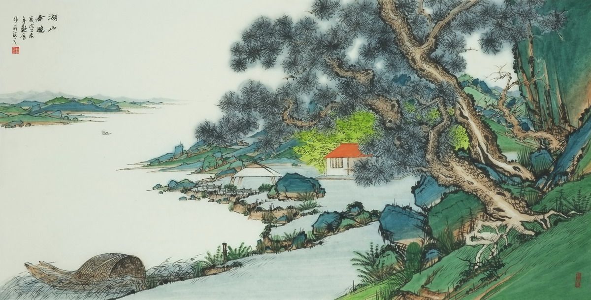 审视刘艳会的青绿山水会发现,他在刻意营造“精神归宿”的同时,在画面上打破“工笔”与“写意”、“水墨”与“重彩”的界限,让腕底的笔墨进入随心所欲的自由状态,在呼应当中、对比当中产生视觉美感。他用心营造山水的程式,将宋、元、明、清的山水意蕴和现实的自然山水相互滋润相互涵养,从而使他的青绿山水生发出全新的命题。这一命题经过生命哲学的观照而升华为意境开阔、格调高雅、清新静远的时代山水。